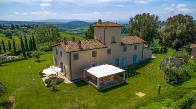 Set between Florence and Siena, this estate features a stone-paved pool and private spa overlooking hundred-year-old olive groves and the rolling Tuscan landscape.