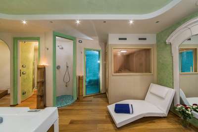 Private spa with sauna, jacuzzi and mosaic-tiled Turkish bath