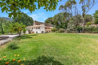 Rustic Mallorcan villa set in peaceful countryside near Puigpunyent, blending traditional charm with contemporary luxury, landscaped gardens, spacious terraces, and a private pool.